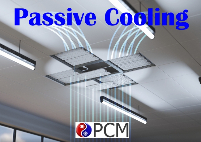 A passive cooling energy storage application designed to work the natural difference between the cooler night and warmer day time ambient temperatures and by storing the cold energy over-night, the daily heat gains both internally and externally can be handled without any mechanical refrigeration, thereby providing maintenance free passive cooling system.